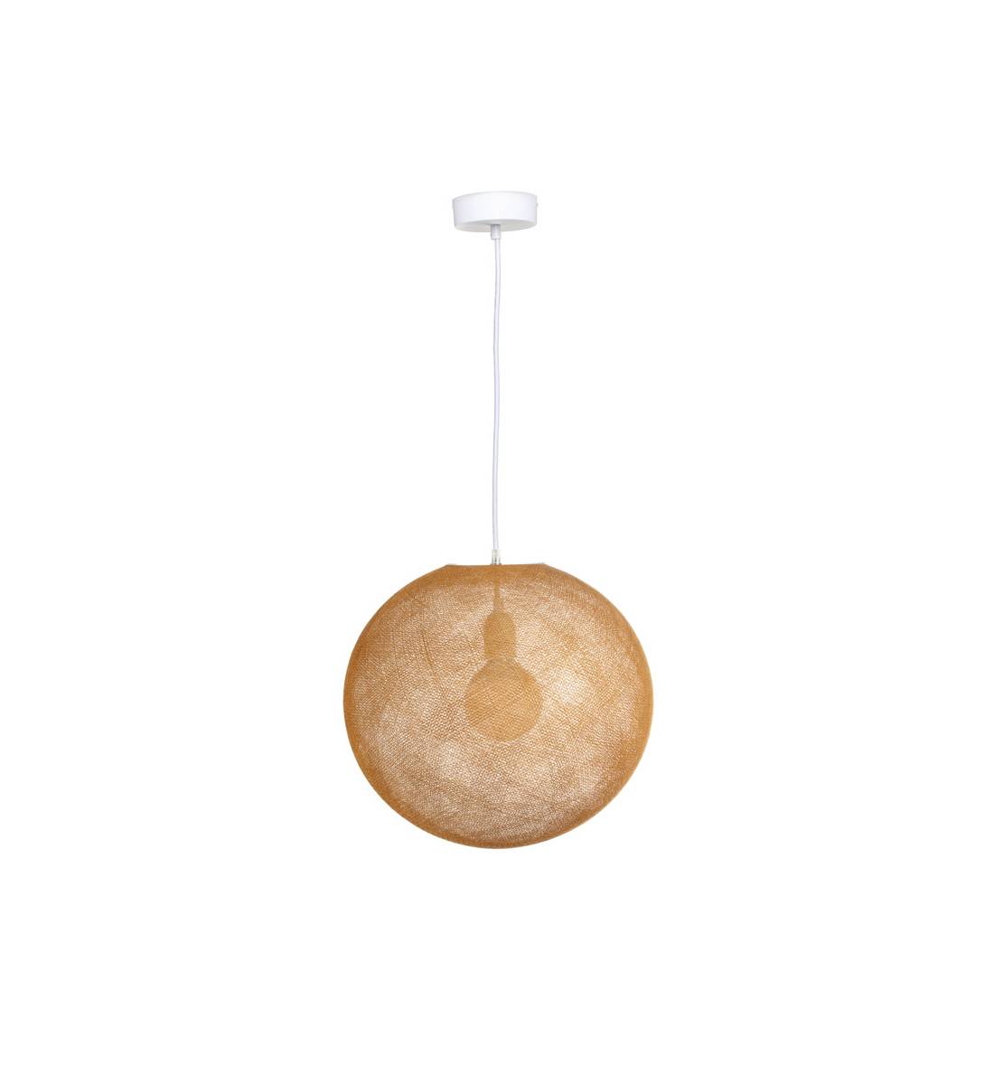 Le globe Light Tabac témoigne du savoir-faire de la marque La Case de Cousin Paul réputée depuis plus d’une quinzaine d’années. Contrairement à sa déclinaison Light XXL Tabac ou Light XL Tabac, cette version de taille M présente des proportions adaptées à tous les intérieurs, spacieux ou exigus. En effet, elle est équipée d’une sphère tissée à la main de 36 cm de diamètre adaptée à presque toutes les hauteurs sous plafond disponible. Pour lui permettre d’être suspendue au plafond, un fil tissé de 80 cm de long ajustable selon vos besoins est compris dans le kit. Pour le déployer facilement, la boîte renferme un spray, un ballon et une notice indiquant la marche à suivre. Par ailleurs, deux disques en plexi fixent la sphère au câble et une douille E27 accueille l’ampoule adaptée. Cette dernière n’est pas fournie dans le kit.