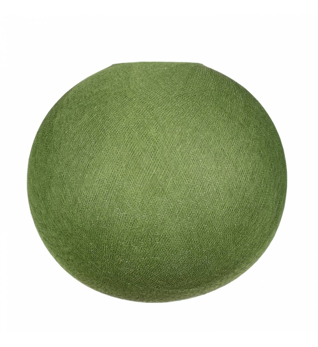 Ce globe vert olive est en fil de polyester et a été fabriqué à la main.