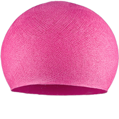 Ce globe rose bonbon est en fil de polyester et a été fabriqué à la main.