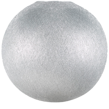 Ce globe argent est en fil de polyester et a été fabriqué à la main.
