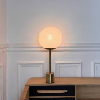 Les lampes à poser de la gamme Apapa présentent une hauteur totale de 39,6 cm. Le modèle Laiton Blanc n’échappe pas à cette règle. Il est équipé d’une base en silicone antidérapant qui se révèle une solution intéressante pour éviter les accidents, même si la lampe est placée sur une surface assez lisse. Pour supporter la boule, la lampe de table Blanc est pourvue d’un pied en laiton avec une finition aspect brossé. Cette particularité apporte une note chic et élégante à l’ensemble. Ce support est conçu dans un matériau solide, résistant et gage de longévité. La boule de la lampe Apapa Laiton Blanc est conçue dans un fil tissé à la main. Elle présente un diamètre d’environ 16,7 cm et embarque trois aimants permettant à la sphère d’être interchangée avec d’autres globes de la même gamme, mais de couleur différente. Pour fonctionner, vous devez installer sur votre lampe une ampoule E14 vendue séparément sur la plateforme. Branchez ensuite la prise CE qui termine le câble tissé noir de 1,80 m à une source électrique. Pour allumer ou éteindre votre lampe, il suffit d’appuyer sur l’interrupteur placé à sa base. Si vous recherchez un élément à la fois décoratif et fonctionnel pour équiper votre intérieur, la lampe à poser Apapa Laiton Blanc est celle qui répond à vos critères. Comme la lampe Apapa Blanc au pied noir, cette version est facile à entretenir.