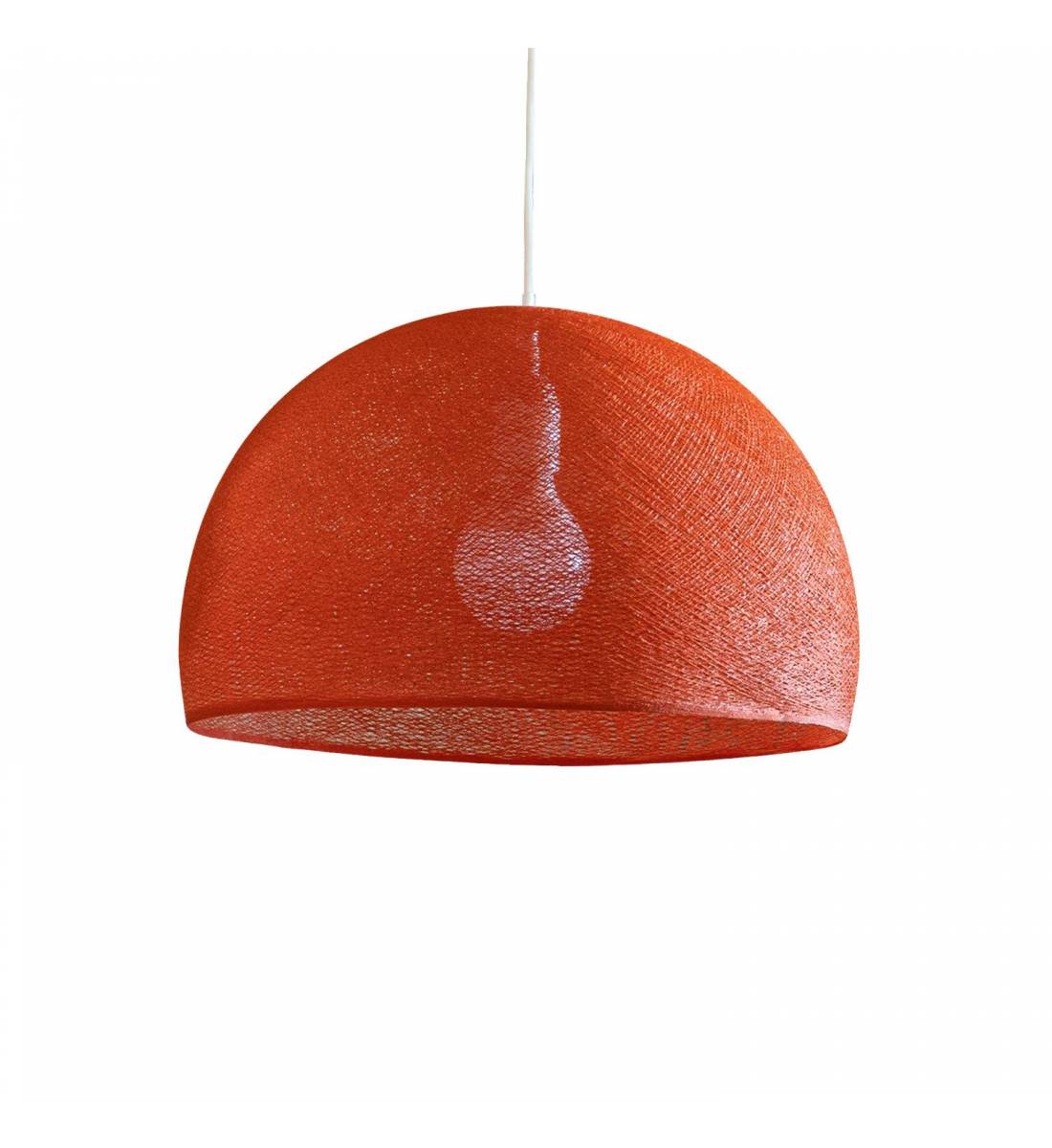 Suspension en fil tissé blanc de 80cm fournie avec nouveau système de fixation : 2 disques plexi maintiennent la boule en place et assurent une finition design particulièrement soignée.