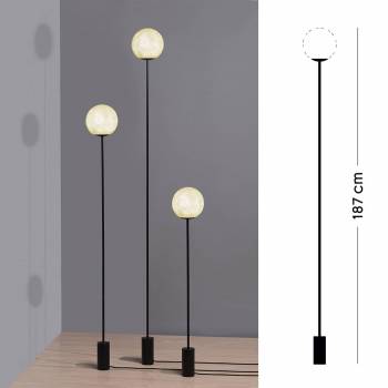Metalen lampvoet gemaakt in Frankrijk, Ø95mm metalen kop, mat zwarte afwerking, handgemaakte magnetische wereldbol, 150cm geweven kabel, met CE-stekker en voetschakelaar.